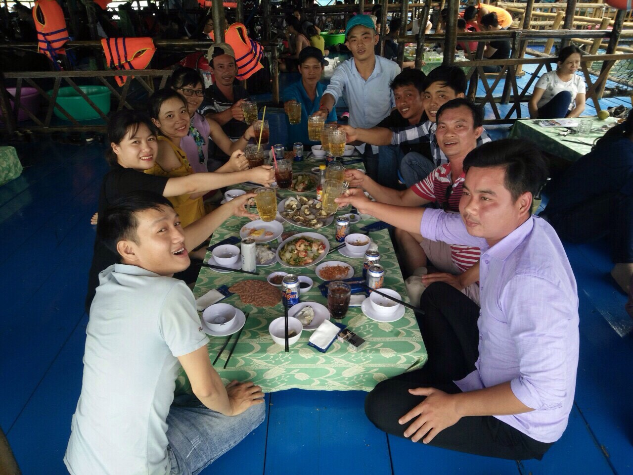 Trở về Khách sạn chúng tôi tổ chức tiệc nướng ngoài trời với những món ăn chúng tôi vừa mua được ở Chợ Lưới, cùng nhau thưởng thức những món ăn ngon, uống những ly bia mát rượi, thưởng thức rất nhiều bài hát hay đặc biệt là tiếng cạch cạch của những ly bia xen lẫn những tiếng 1 2 3 dô, Chúng tôi cảm thấy hiểu nhau hơn, đoàn kết hơn.